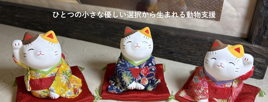 やわらかな和紙の質感と、淡い花模様が可愛く調和した陶器の招き猫。 手仕事ならでわの温もりが感じられ、お部屋に穏やかな華やぎを添えます。 和紙を丁寧に貼ることで生まれる優しい風合い。見るたびに心がほっとなごむ存在です。 玄関やリビングに飾れば、幸運を招く縁起物としてもピッタリな、優しい佇まいの招き猫です。 ~ 招き猫って? ~ 招き猫は、幸せを呼び込む縁起物。江戸のころから、商売繫盛や家内安全のお守りとして親しまれてきました。 右手を上げた猫は“お金”を、左手を上げた猫は“人”を招くといわれ、上げている手の高さにも願いが込められています。高く上げれば「遠くの幸せ」を、低く上げれば「身近な幸せ」を。 コロンとした姿の中に、誰かの幸せを願う気持ちが詰まった、日本らしい優しさの象徴です。 サイズ:幅10×高10×奥13㎝ 和紙張り陶器人形1体、リバーシブル美濃和紙友禅染台紙 生産地:日本